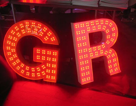 外露發光字又被稱為不銹鋼沖孔發光字、鈦金字、鋅鐵字等,分別由不銹鋼板,鈦金板,鍍鋅鐵板沖孔后,裝上LED防水燈串制作而成。在制作前要先選好材料,做什么字,選什么材料,根據字體大小,安裝的位置和客戶的要求,選擇相應的板材,然后把整張的板材用機床進行沖孔,然后用刻機對面板刻出字形,然后把刻好的字焊接成立體邊,再進行打磨光滑,避免毛刺。然后就是噴烤油漆,油漆干后,就可以裝LED單顆燈串了,裝燈串的時候務必要考慮能夠方便接線,每顆燈用橡膠套做風水處理,這么做也比較有利于后期對外露發光字進行維護。